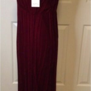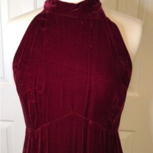 Gorgeous long dark garnet velvet dress perfect for holiday season!!! No size. Tag still on! Zipper closure in the back. Halter neckline. Floor length. Dark garnet color.