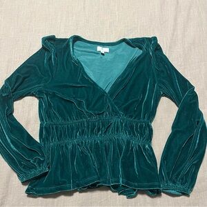 Velvet Long sleeve Ruched Blouse Deep Rich Teal Size Medium Y2K Holiday Party