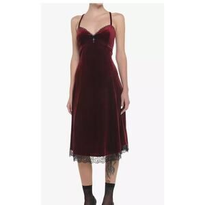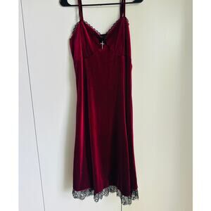 Velvet Maroon Slip Dress Size Medium Goth Witchy Vampire Dark Romantic Midi