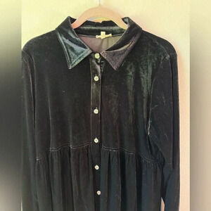 Black long-sleeve velvet button-up maternity dress with collar and button sleeves from Pinkblush