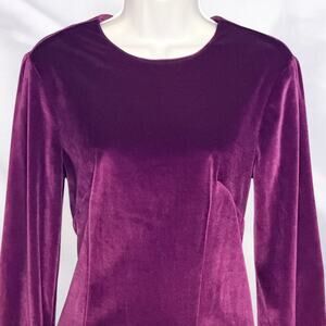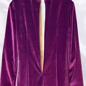 A dramatic vintage purple velvet maxi dress with matching cutout vest, blending Victorian Gothic elegance with 70s formal flair. Each piece alone makes a luxurious statement.