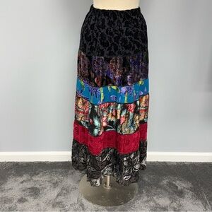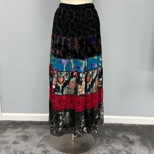 Velvet Maxi Skirt Chicos 0 (US Small) Black Silk Blend Burnout Patchwork Boho