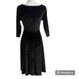 Velvet Midi Black Dress Holiday Event Minimalist - M