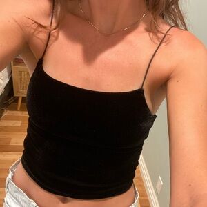 This 90s-inspired tank has barely-there elastic straps and a built in shelf bra that’s compressive and comfortable. It’s slim-fitting and so flattering.