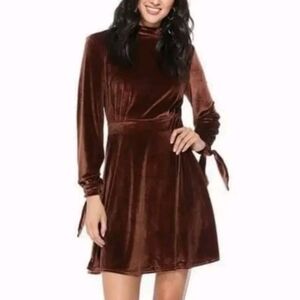Brown Velvet Sexy Party Backless Open Back Long Sleeve Mini Skater Dress NWOT