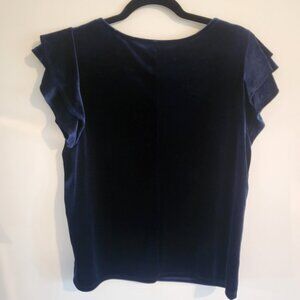 Navy Velvet top with ruffle cap sleeves.