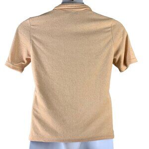 Velvet Orchid Sz Medium Polo Top Light Brown Velour Short Sleeve Collared V Neck