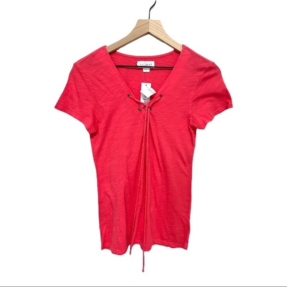 Velvet Pink Cotton Short Sleeves Casual Top Size S