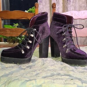 Velvet Platform Ankle Boots - Purple 6.5 Lace Up Bootie