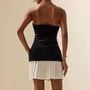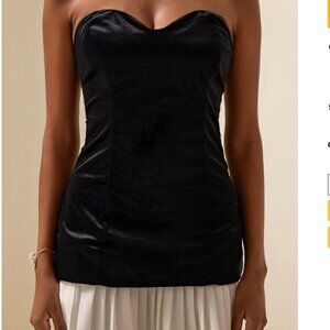 Velvet, pleated, strapless, mini dress, black, sweetheart neck