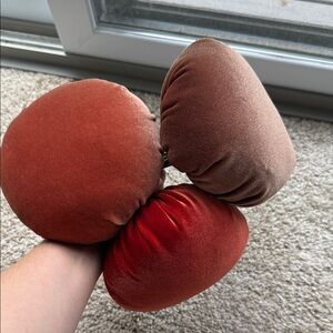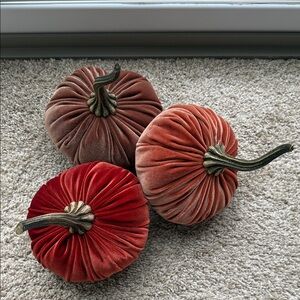 Set of three velvet pumpkins in rich autumn colors. Perfect for seasonal decor.