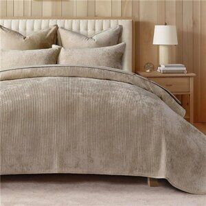 🧿TIMELESS ELEGANCE QUILT - Elevate your bedroom decor with our channel velvet quilt set. Crafted to perfection, the subtle shimmer of the unique crushed velvet material evokes a captivating sense of luxury and sophistication. Its striking allure ensures it becomes the centerpiece of any room, whether as a standalone feature or layered with other textures, infusing your space with elegant refinement.