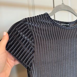 PLT size 4, never worn. Would say it’s a sleet colors. Ribbed/velvet fabric