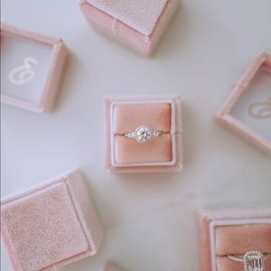 This listing is for ONE pink velvet square ring box - gorgeous for engagement or wedding photos, or safe keeping of your favorite rings!