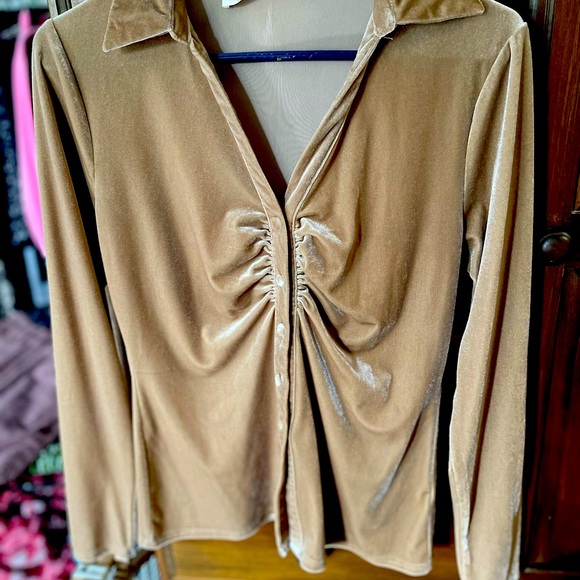 Velvet Ruched Tan Top