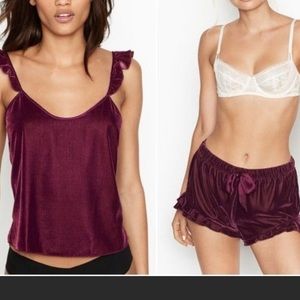 Velvet Ruffle Soft Cami Shorts 2-Piece Pajama Set Medium