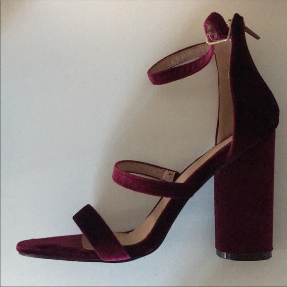 ✨Double strap✨ buckle closure✨zipper back✨wine colored velvet sandals✨ from boutique✨ C LABEL✨4.25 round block heel✨size 8✨worn once✨ Smoke and pet free home✨No trades✨Ships same/next day✨