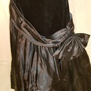 The skirt is a full circle skirt, the sash & bow fall from the top of the hip to the hip bone.
