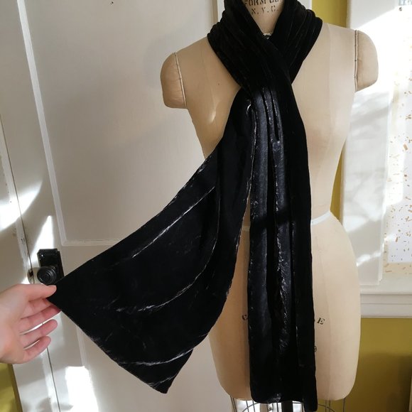 This scarf is super soft and slinky. A deep brown color that is so dark it could easily be mistaken for black.