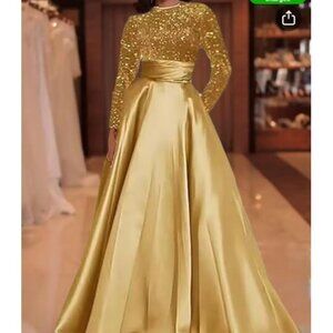 Holiday Dress For Women, Velvet Sequin Contrast Satin Pleated Midi Dress, A-Line, Long Sleeves, Crew Neck, Elegant Style, Prefect For Wedding Guest, Mother Of The Bride, Party Dress, Christmas Dresses For Woment