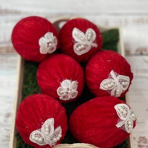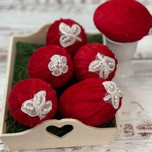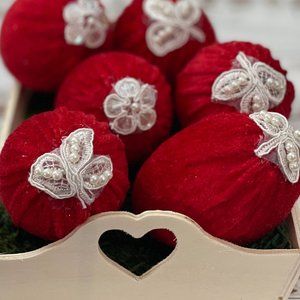 Velvet Set of 6 Easter Egg| Lipstick Red | Valentines Day Vase Filler| Photo