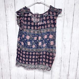Velvet Shirt Women Size Small Multi Ruffle Scoop Neck Short Sleeve Blouse Boho