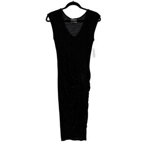 Velvet Sleeveless Black Midi Damara Dress with Side Knot Detail Black NWT