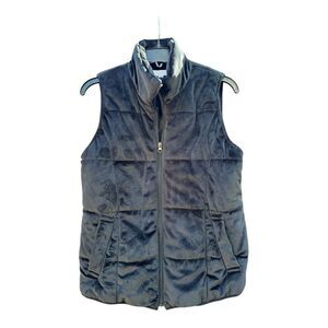 Velvet Soft Zip Up Warm Puffer Vest With Pockets - Size Large