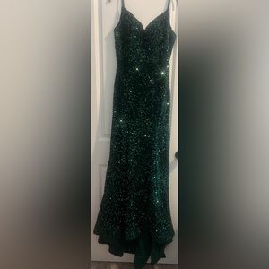 Velvet Spaghetti Straps V Neck Sequin Evening Gown Sparkly Prom Dress size 10_12