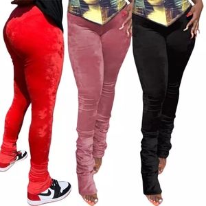 Velvet Stacked Pants Pink Black S-XL