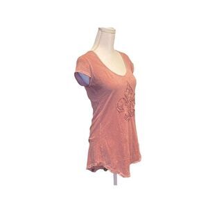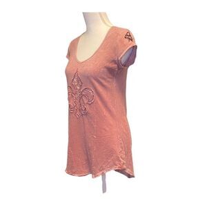 Velvet Stone Diamond Vail Raw Edged Embroidered Biker T Shirt Size Small