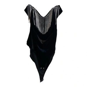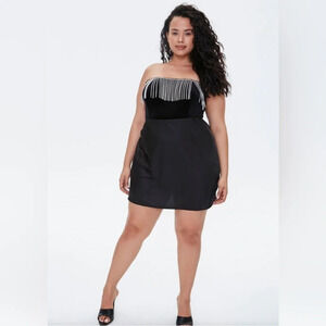 Forever 21 Plus Size Velvet Strapless Bodysuit with Rhinestone Fringe detail, Size 0X (see size chart posted for measurements) ~ New with tags!