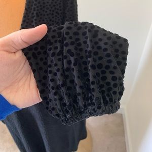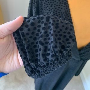 Super chic and bold velvet textured midi dress with balloon sleeves and deep V neck 🖤 let your spooky and edgy soul cry of joy! NWT
