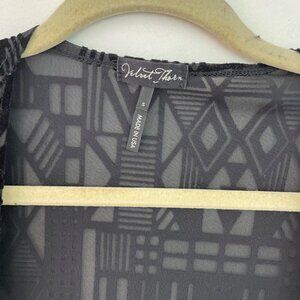 Velvet Thorn Womens Kimono Top Black Size Small Fringe Burnout Velvet Open Front