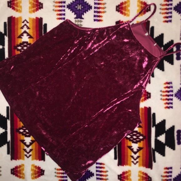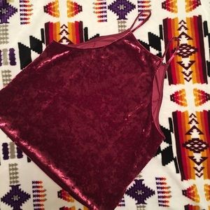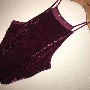 Velvet Top. Super comfy. Maroon in color. Small (I took the tag off due to it being itchy) Well Loved. Worn once for NYE🎉🎉🎉 90% Polyester 10% Spandex