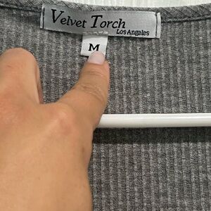 Chic charcoal ribbed tee by Velvet Torch. Perfect for any occasion.