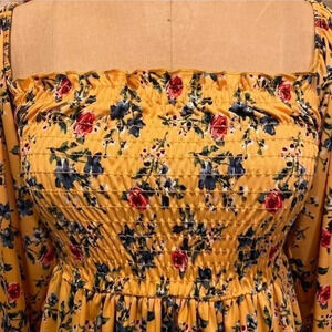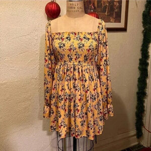 Velvet Torch Los Angeles Smocked Yellow Floral Mini Dress Size M