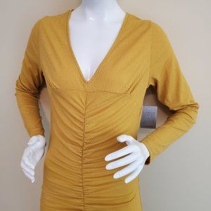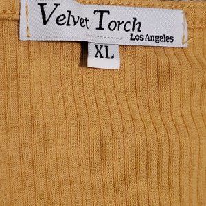 Velvet Torch Women's Mustard V-Neck Ribbed Knit Mid Dress SZ XL