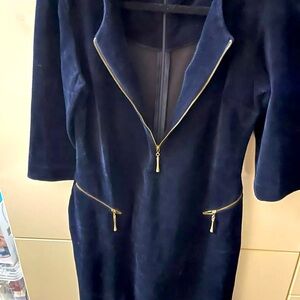 Velvet Velour Woman’s Dress Size S/M Dark Blue 2 Zippers from both sides Size 40. Pre owned. Excellent condition