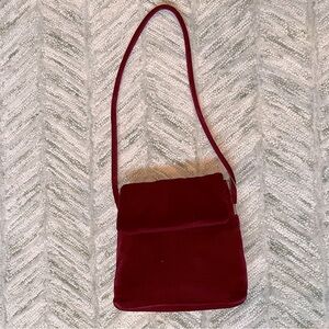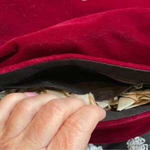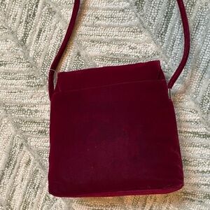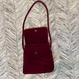 Velvet Wine Colored Handbag Purse Snap Closure Zipper Pocket NWOT Back Pocket