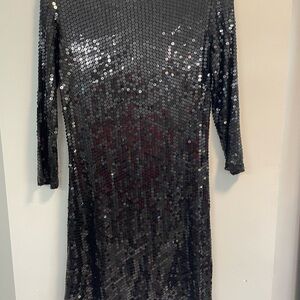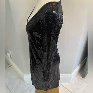 Velvet Women’s Black Sequin Deep V Neck Mini Dress half sleeve