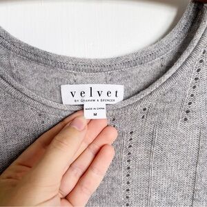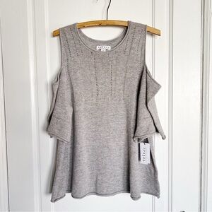 Gorgeous open shoulder sweater by VELVET by Graham & Spencer. “Wool Blend Cold Shoulder Sweater” style in heather gray sweater knit. Bust 39-44“, length 24.5“. Size M, brand new with tags.
