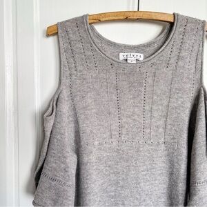 Velvet • Wool Blend Cold Shoulder Sweater heather grey cashmere knit pullover
