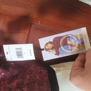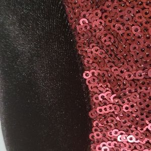 Pretty NWT velvet trimmed dark pink/red sequined halter top. Racer back with netting and zipper.