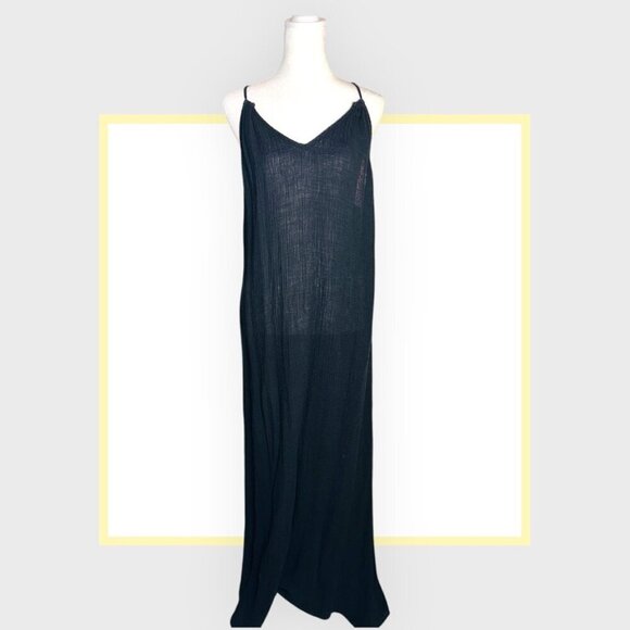Perfect for beach days or poolside lounging, this Velvet brand maxi cover-up combines comfort and style effortlessly. The sheer lightweight fabric allows for a breezy feel while providing full-length coverage. It features thin, adjustable straps and a relaxed fit, making it a perfect addition to your summer wardrobe.