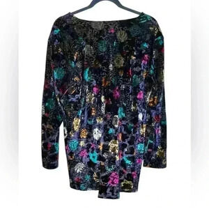 Velvet burnout long sleeve top Andrea Lieu black with purple teal pink dots