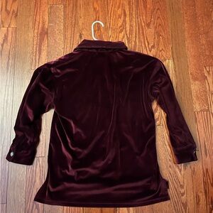 Dark red velvet button down top, perfect for Valentine’s Day, really pretty buttons on sleeves