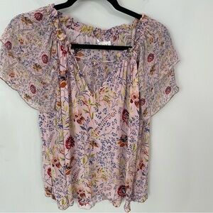 Velvet by Graham & Spencer Angel Floral Print Blouse Size Medium Office Casual 4
