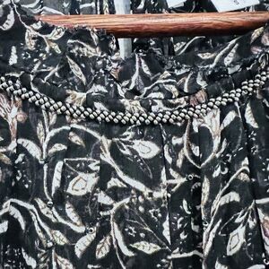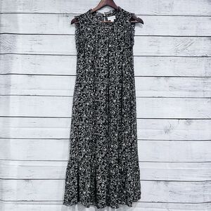 Velvet by Graham & Spencer Black Floral Print Midi Dress Tie Waist Ruffled Small