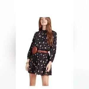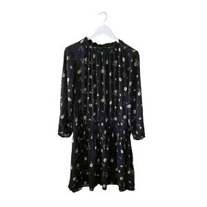 Velvet by Graham & Spencer Black and Yellow Leslie Floral Smocked-waist Casual Dress SZ S